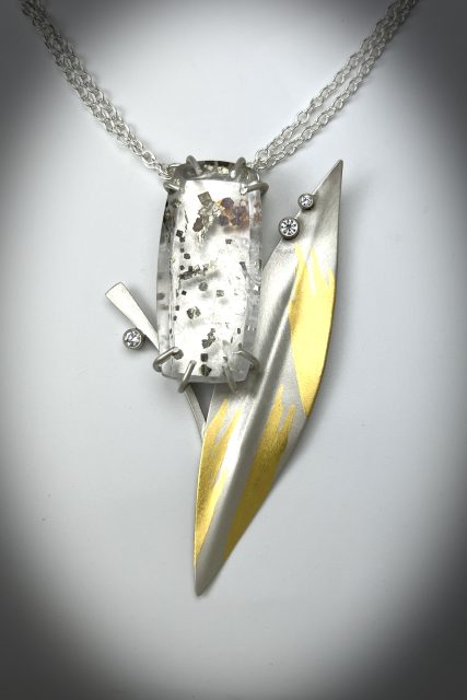 A bold statement necklace of sterling silver and 23k gold leaf, featuring shimmering marcasite in quartz and brilliant lab-grown diamonds